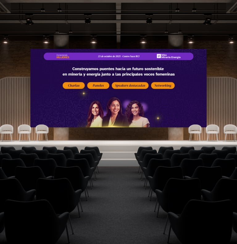 Conectando Mujeres es un evento dirigido a mujeres de las industrias de la minería, energía y sostenibilidad de Chile. Melissa estuvo trabajando en el contenido y Denise en la parte gráfica del evento.